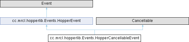 | Public Member Functions inherited from cc.mrcl.hopperlib.Events.HopperEvent | |